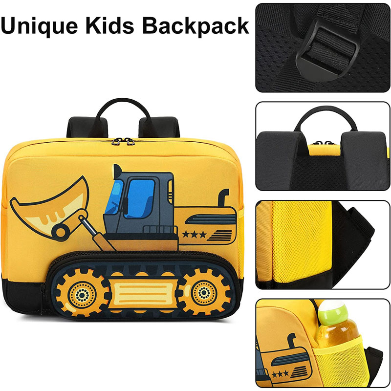 · Aantrekkelijke details - Superleuke vrachtwagenrugzak voor kleuters met 3D-graafwielen, reflecterende strip waardoor hij 's nachts of in de mist gemakkelijker te herkennen is. De schouderbanden zijn ademend en comfortabel en de borstbanden houden de tas op zijn plaats. Aan de onderkant zitten antislipdeeltjes, die je op de grond kunt leggen wanneer je ze nodig hebt.
